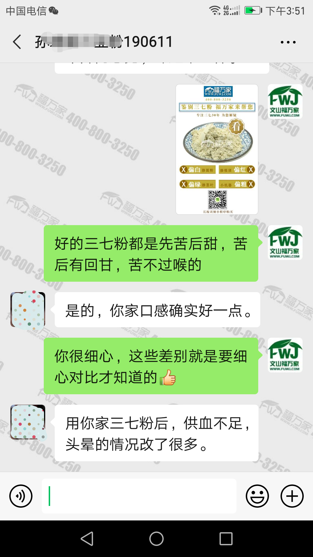 孙女士脑供血不足,经常头晕。后面坚持吃福万家三七,最近反馈,头晕的情况改善了很多。