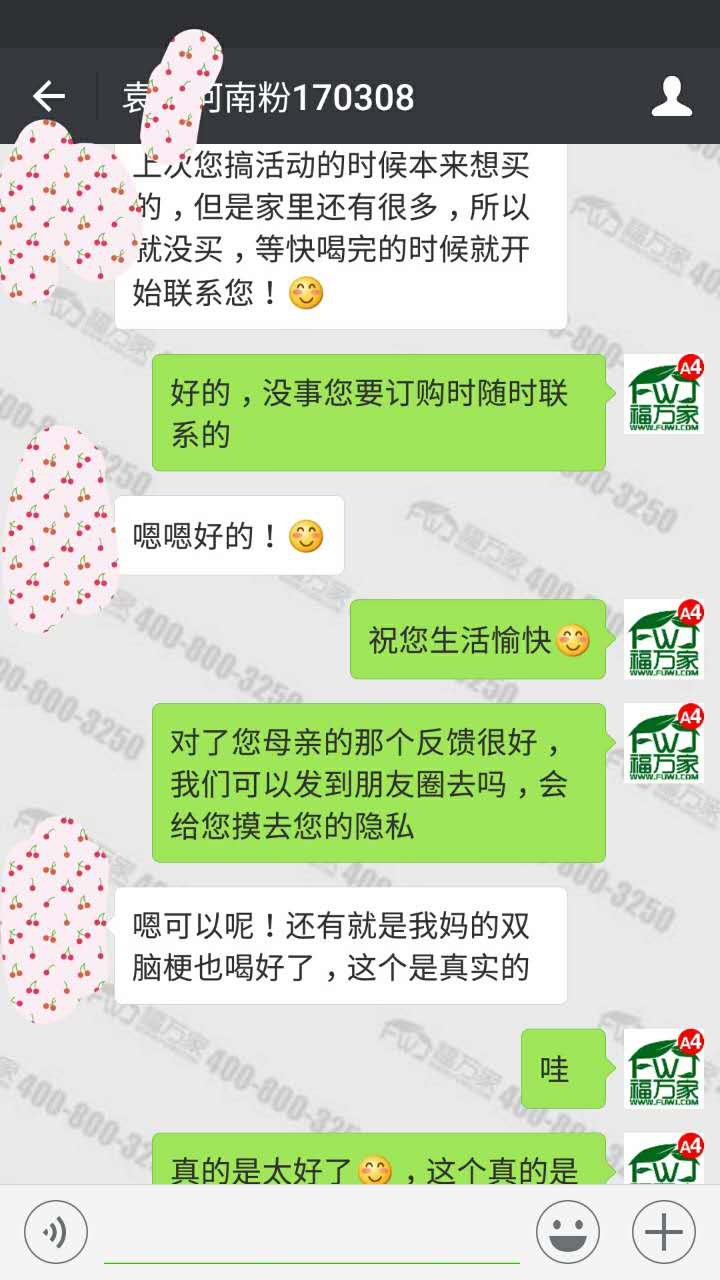 河南袁女士跟我们反馈,她母亲吃福万家三七粉之后效果很好,之前脸色是很暗沉的,现在红润了很多,血脂血压都基本稳定了,而且脑梗都好了。现在她和哥哥都在吃,看到母亲用的好会坚持一直吃下去的。具体咨询:4008003250