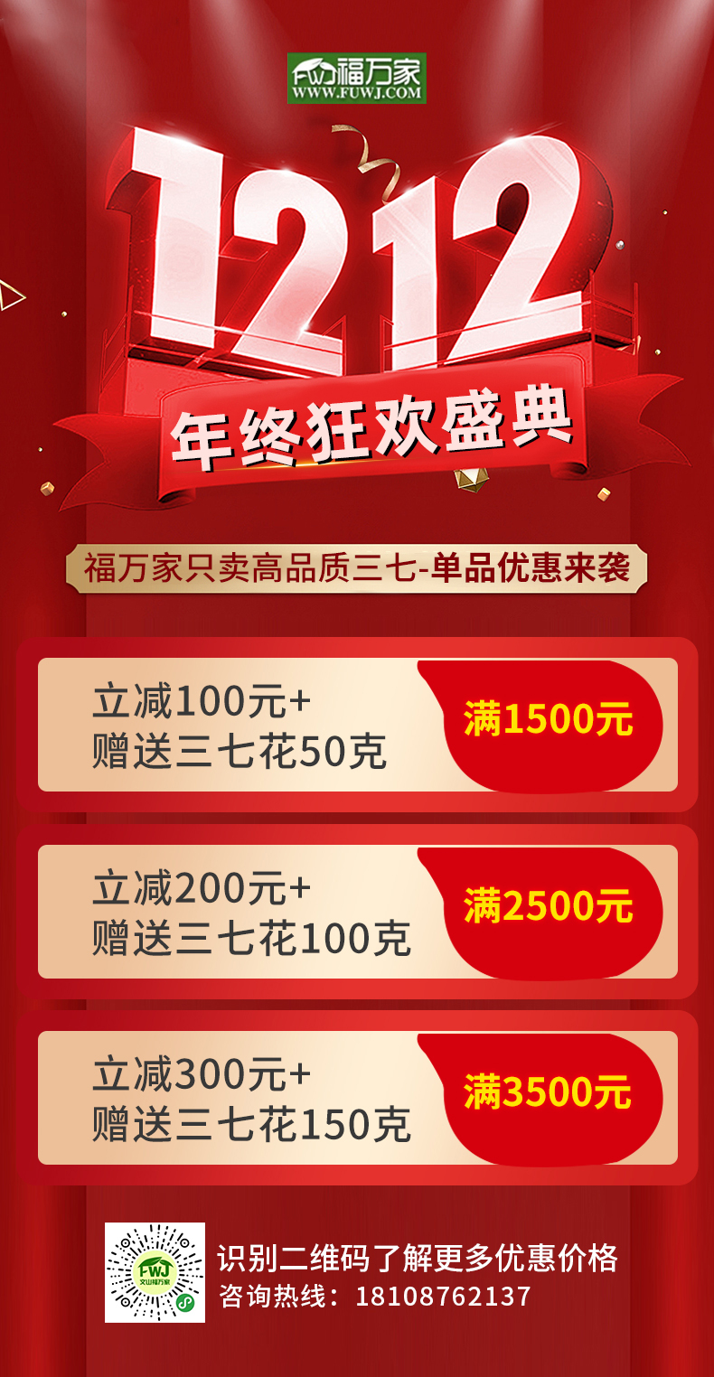 订购立减现金,还额外送三七花,买就减买就送,量大更优!!!